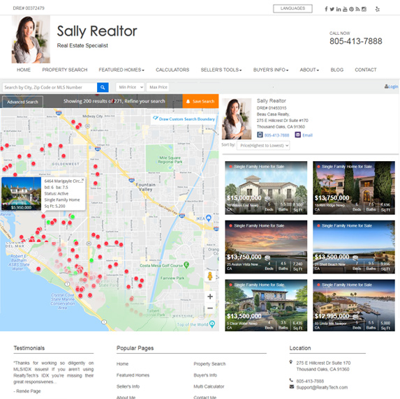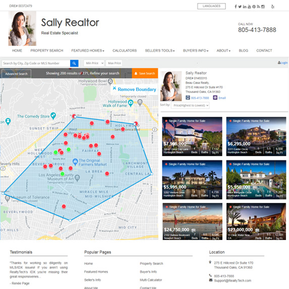 RealtyTech Apex IDX Available ONLY in All Southern California MLS Systems, and Miami MLS.